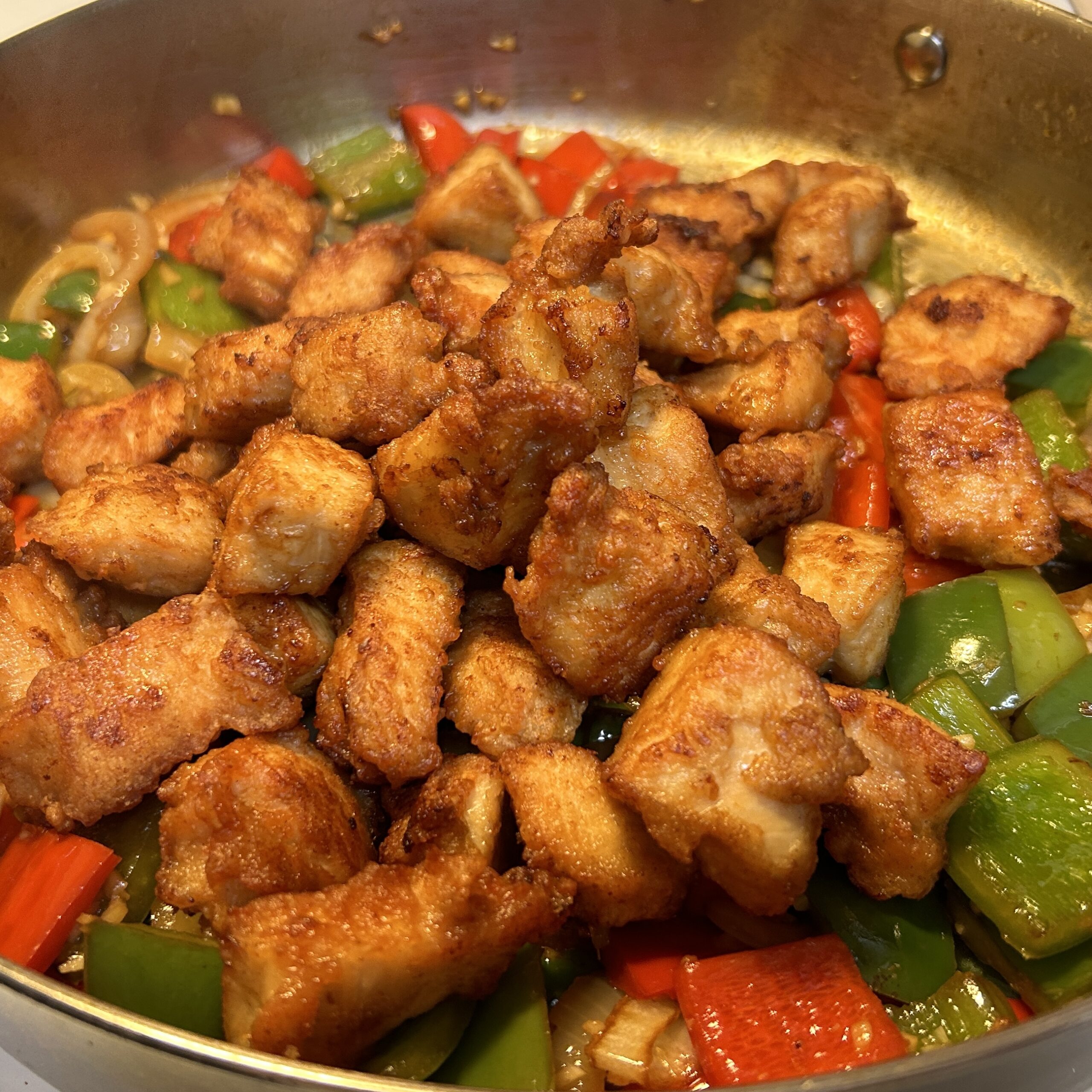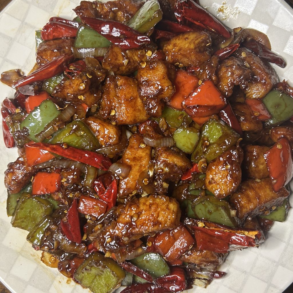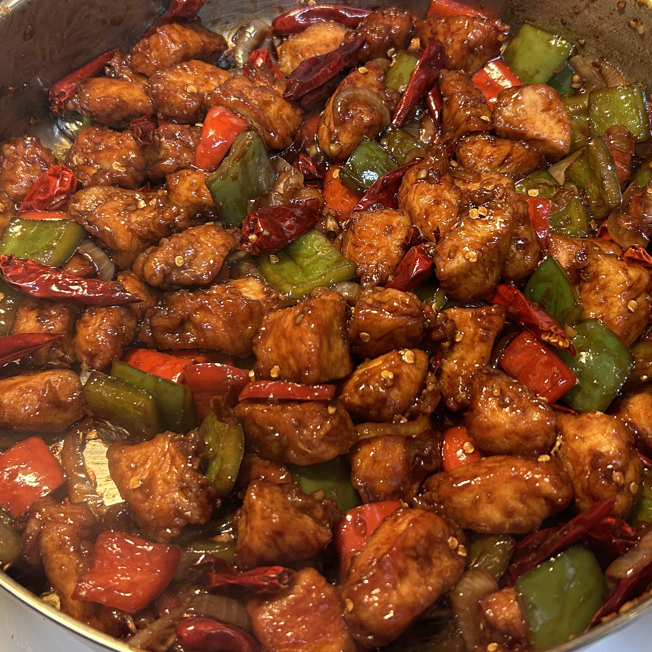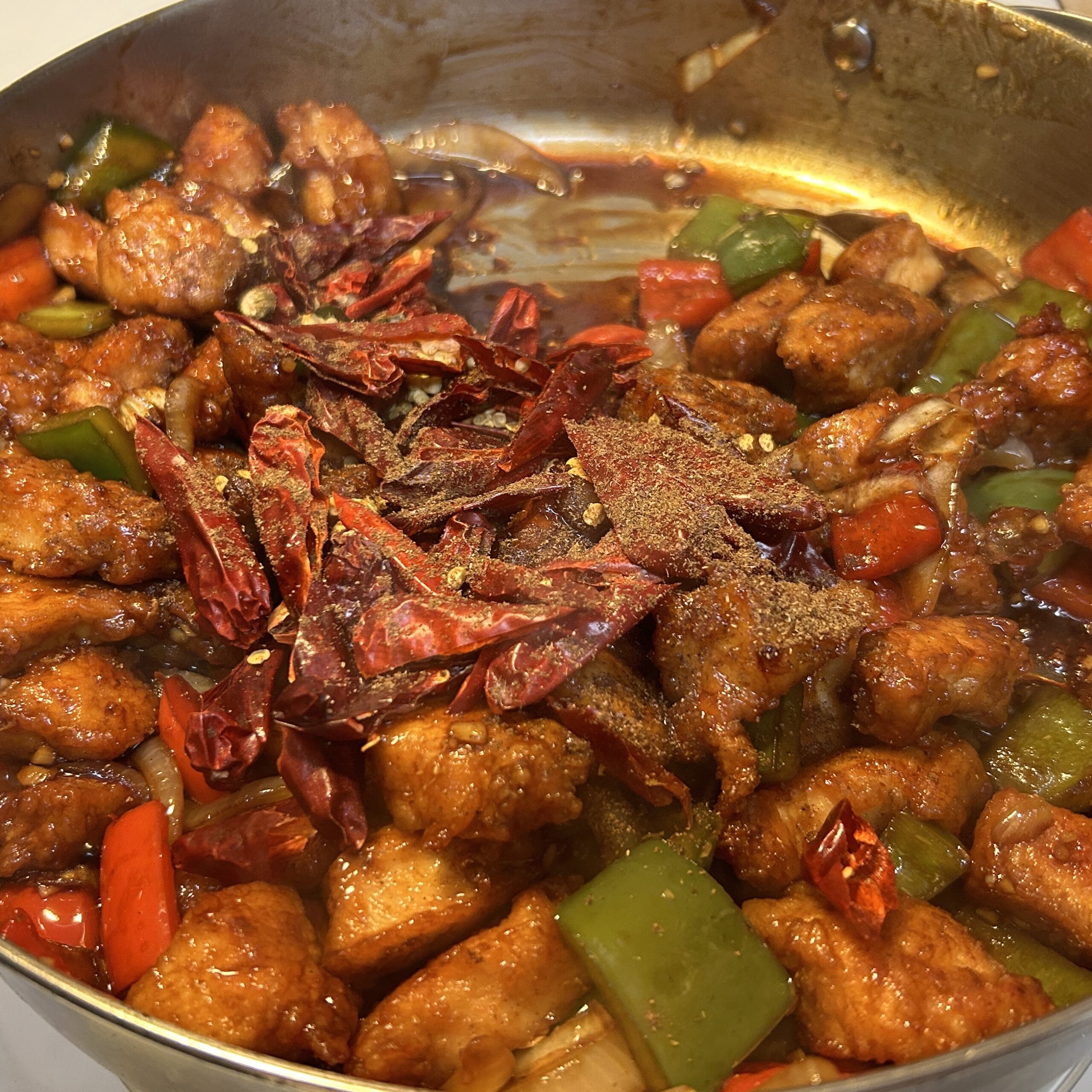 The chicken is marinated and coated in corn starch, double fried for extra crispiness and simmered in a mixture of spicy sichuan peppers and other vegetables in a sticky sauce. The star of this dish are the sichuan peppers and peppercorns used to give it that mouth tingling flavor, but the recipe also uses classic Chinese spices like garlic and ginger to offset the heat and complete the flavor profile.