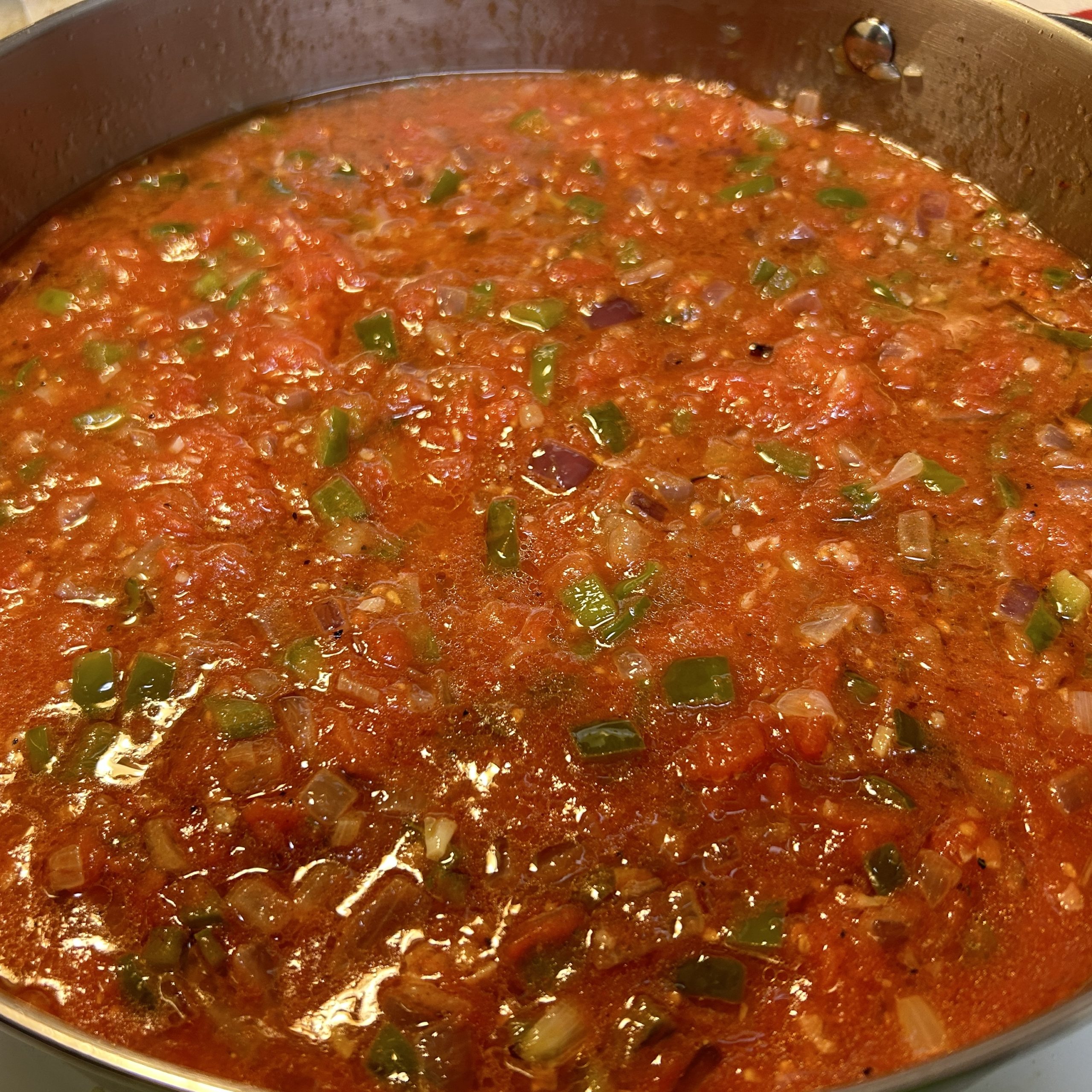 - Add the tomato mixture. Cover, and let simmer for about 15 minutes, mixing occasionally. You can add water as needed. (I used about 2 cups for the entire process)