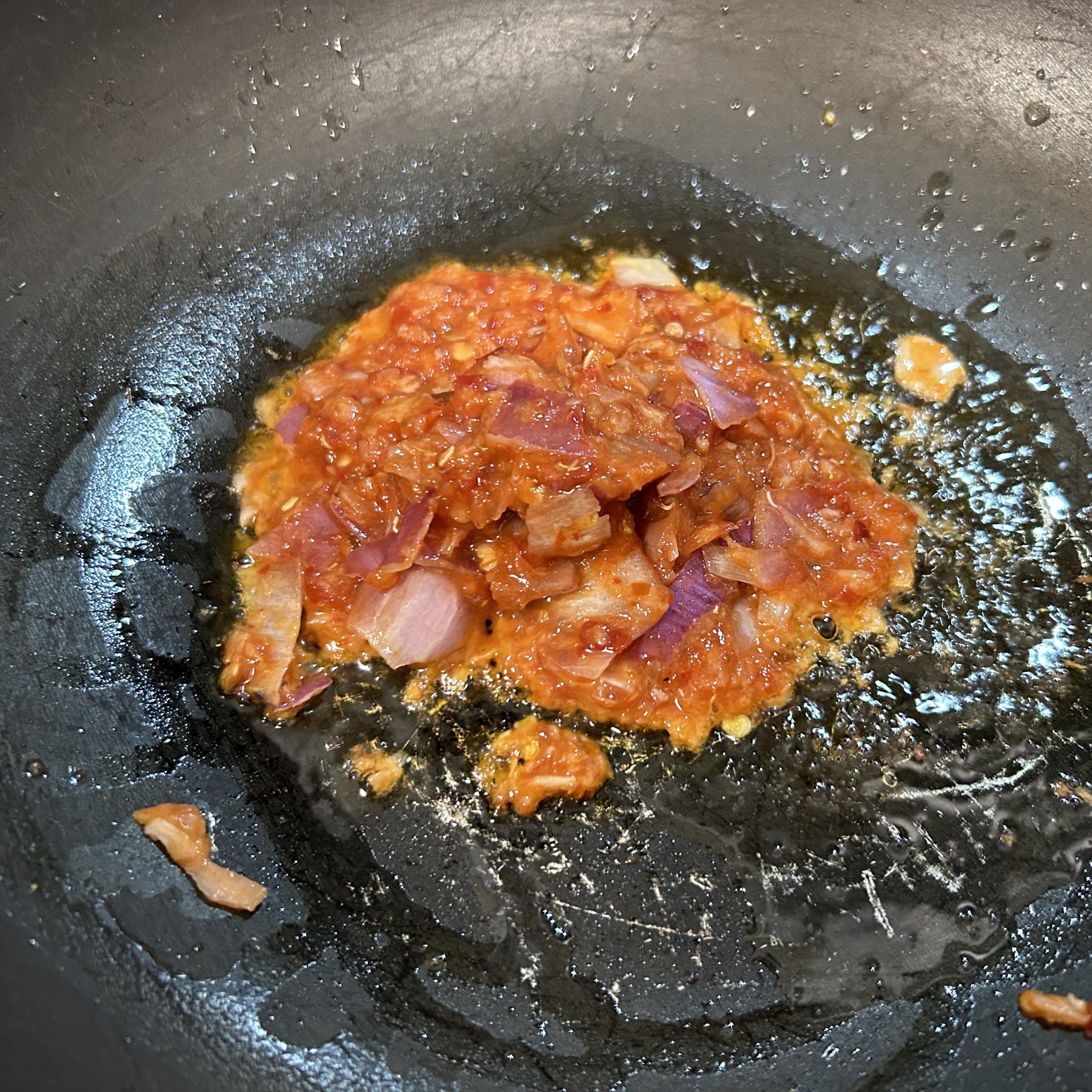 - Once hot, add the paste. Stir and let cook until fragrant, about 1-2 minutes.