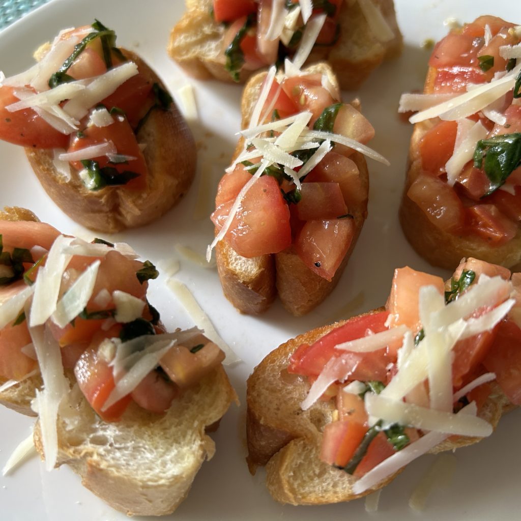 - Top with bruschetta mixture.