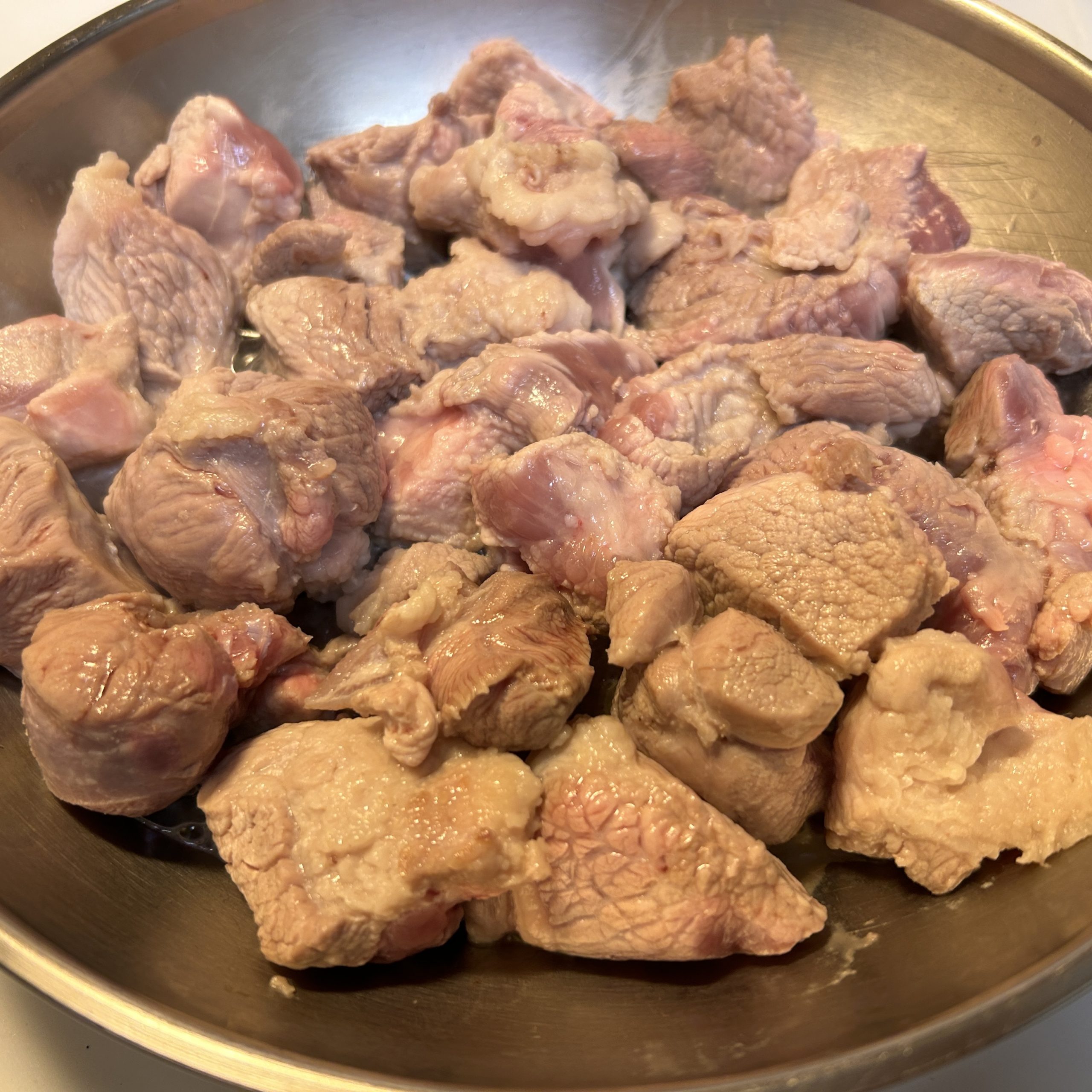 1. In a pan over medium heat, add the pork and let cook for a few minutes until browned.