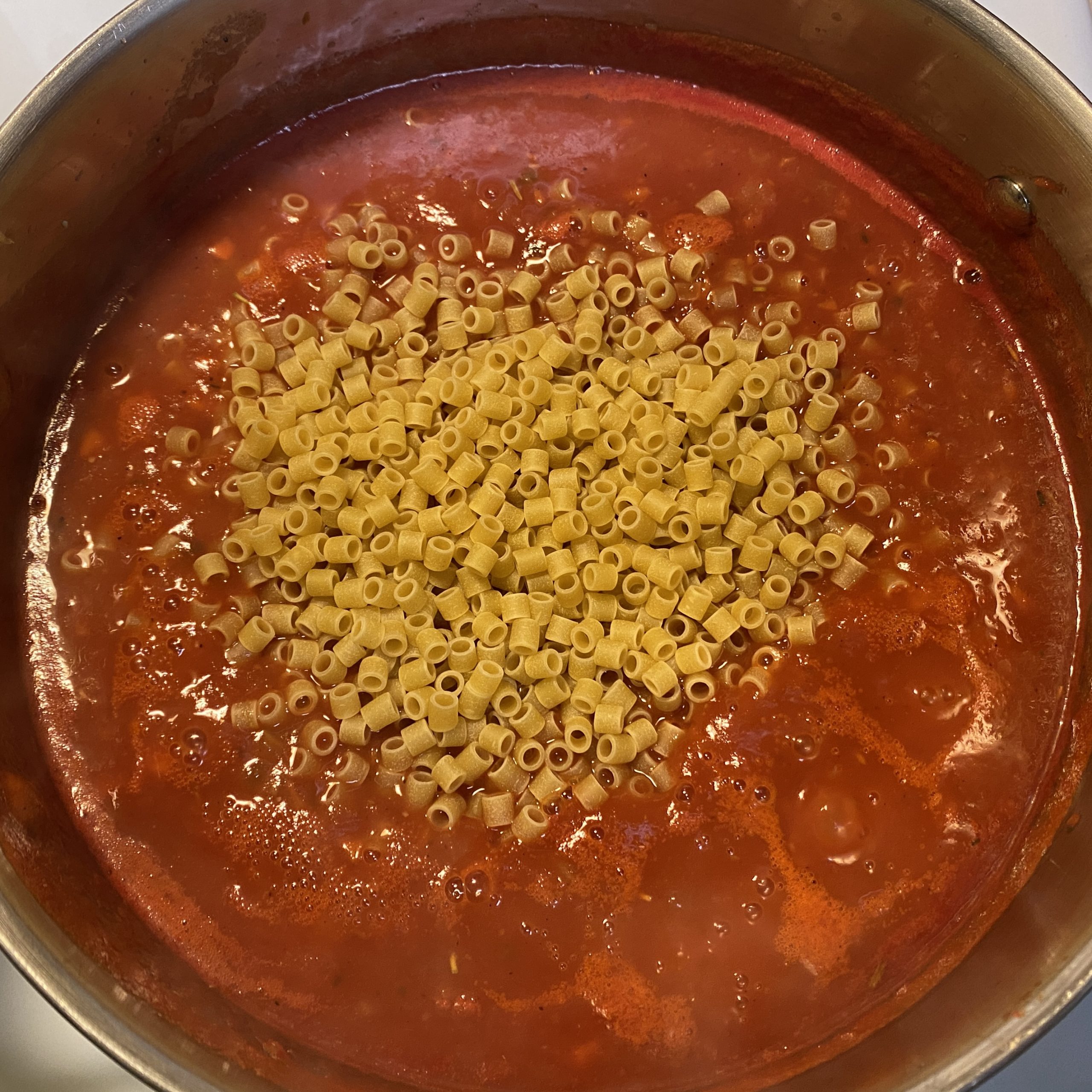 6. Add the pasta, stir, and let boil until the pasta is al dente.