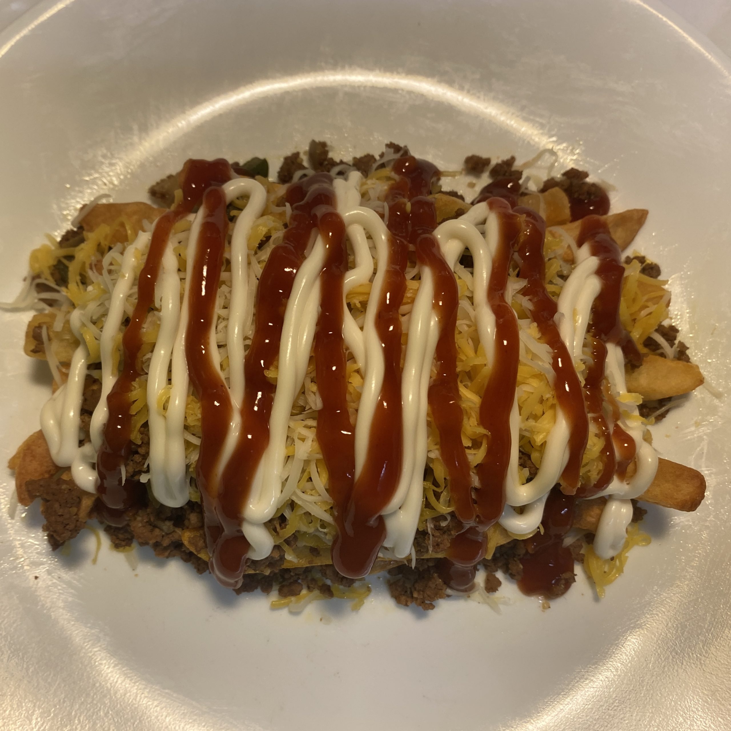 Crispy fries topped with a heaping layer of juicy ground meat covered in ooey gooey cheese then smothered in delicious mayo and ketchup doesn’t sound like your typical traditional dish.