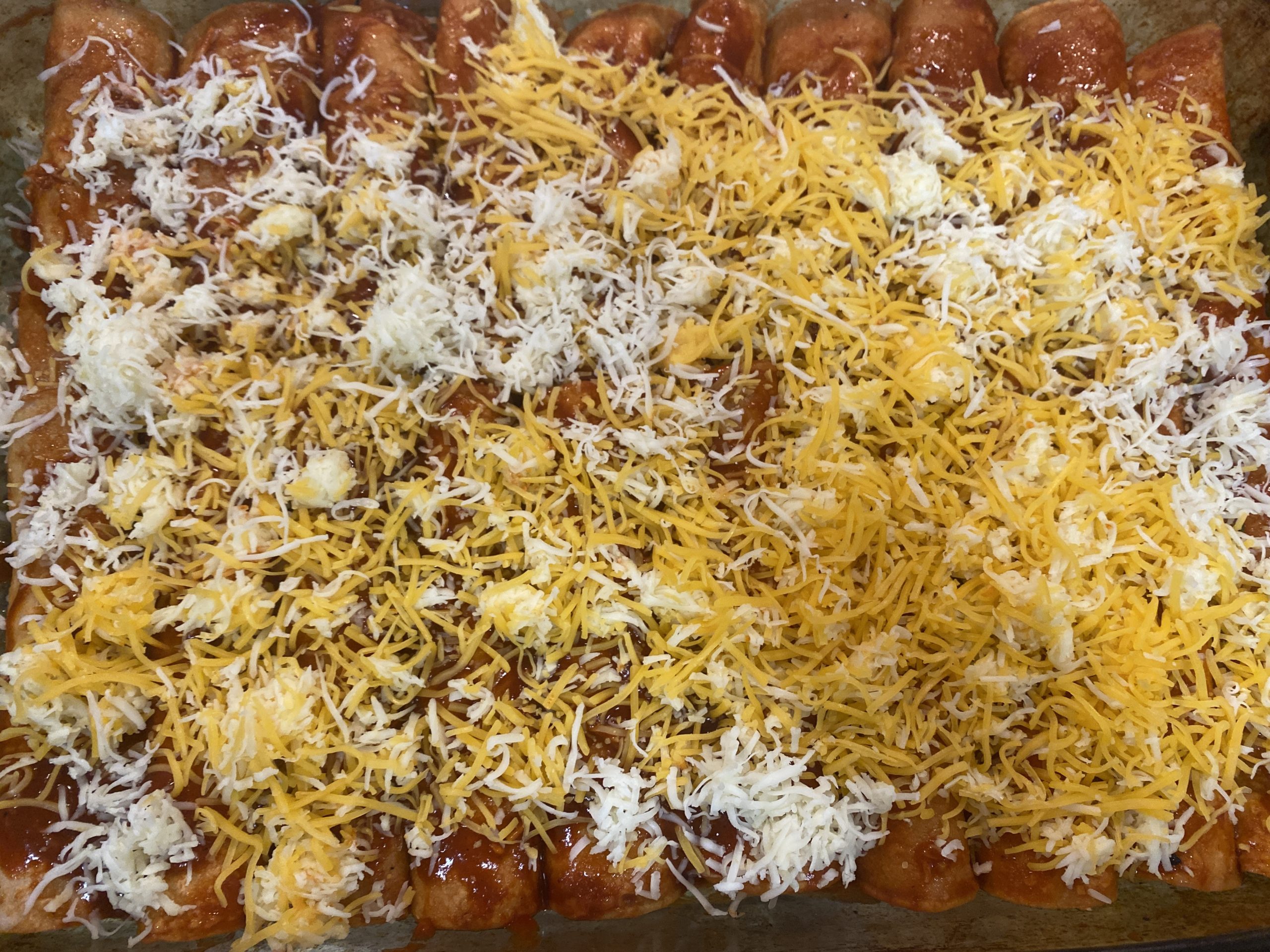 5. Pour the remaining sauce over the tortillas, and add cheese.