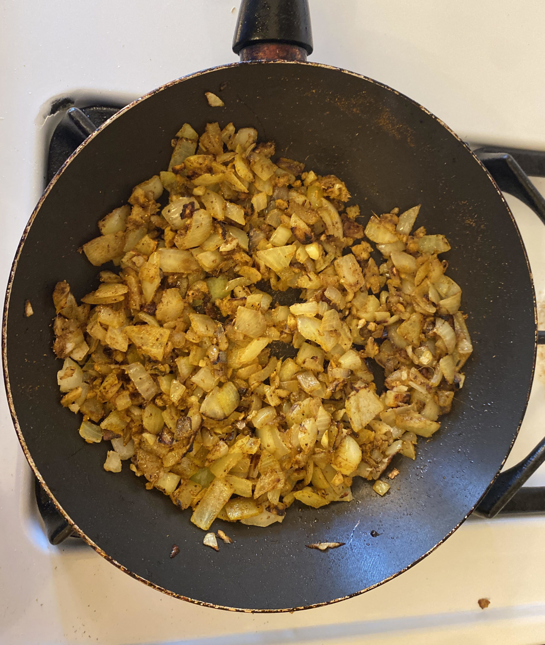 - Add the garlic and ginger, and cook until fragrant, about 30 seconds to 1 minute. Stir in the garam masala, coriander, cumin, turmeric, salt and cayenne (if using), and cook for another minute, while stirring constantly.