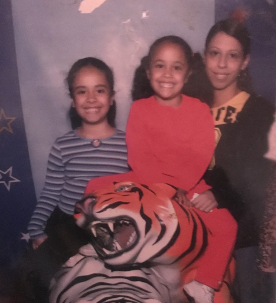 Amanda (left) with her sister and mother.