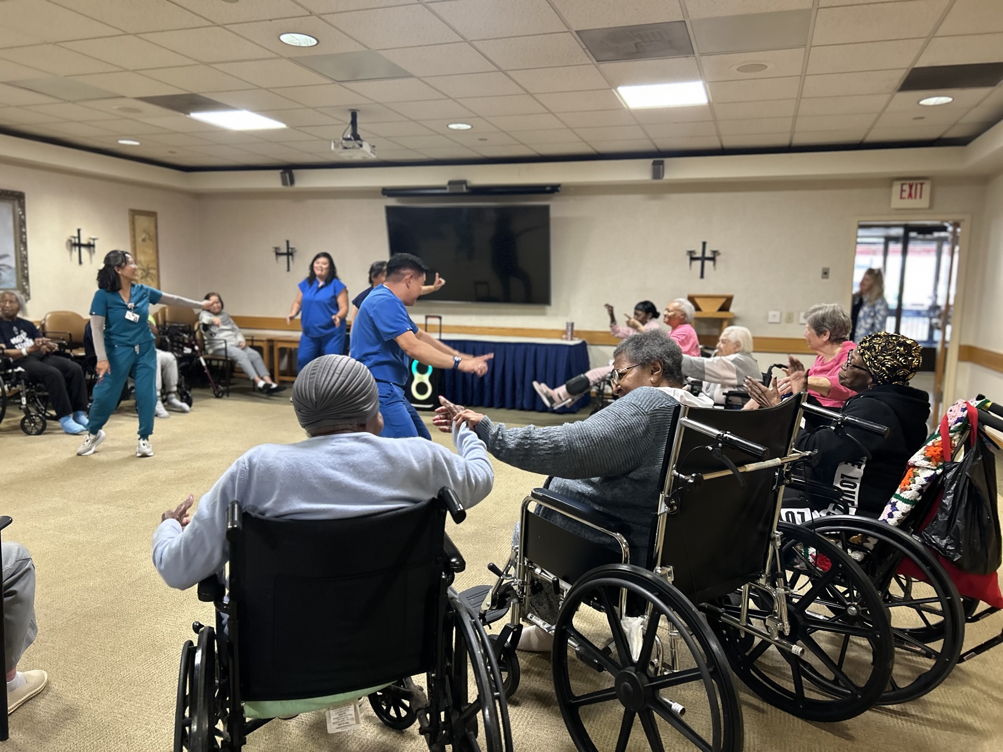 On the other side of the room, the same day of the “Move & Groove,” was Elaine Carney. Carney didn’t get up from her seat, but she was active enough and made sure to get her friend, Ruby, who’s 101 years old, moving too.