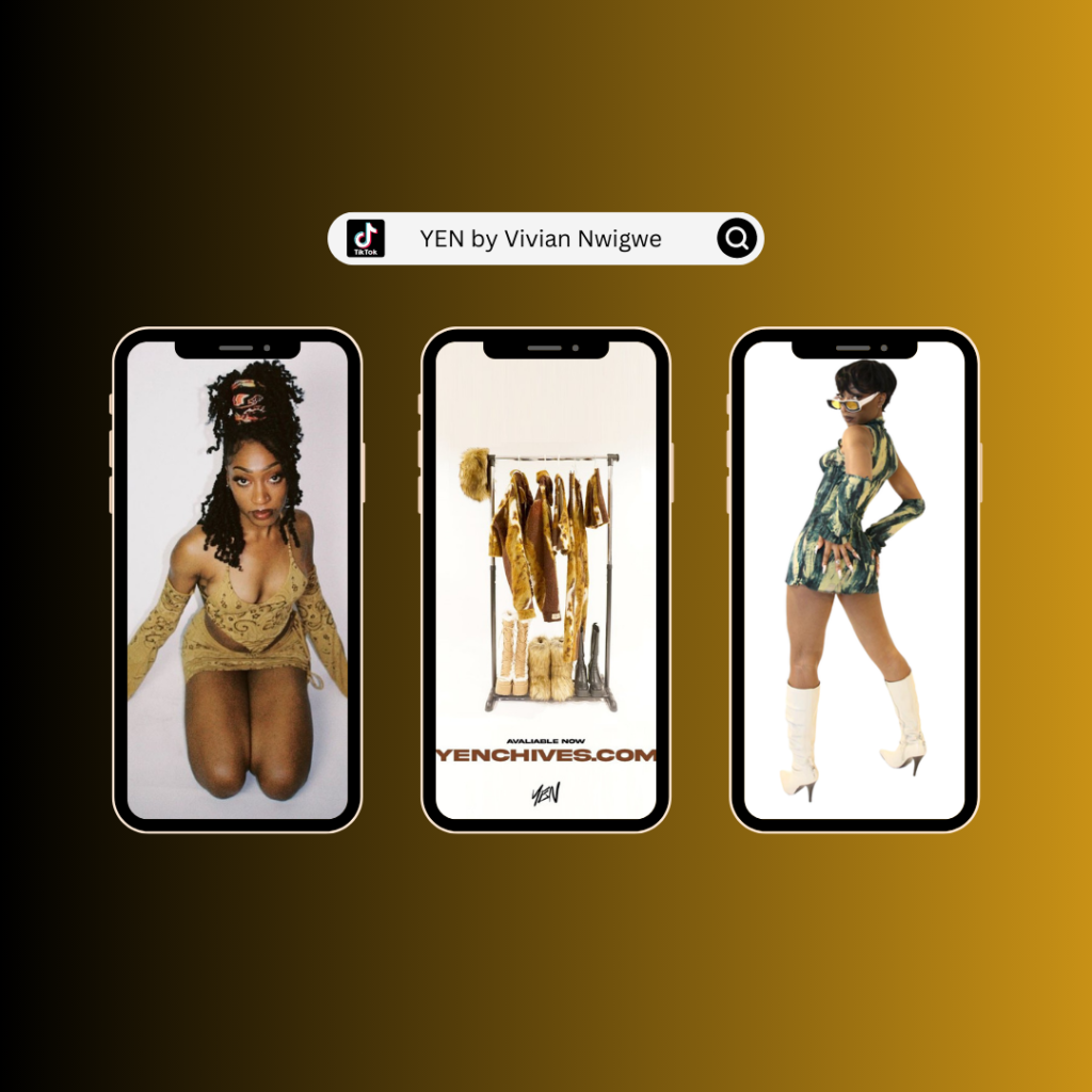 Vivian Nwigwe, also known as Yen, is a self-taught, New Jersey-based designer. She is an advocate for conscious fashion and passionate about sustainable developments and initiatives. She specializes in sourcing her own materials, upcycling, and garment redesign. For her, TikTok has allowed her to share own brand and creative process with others.