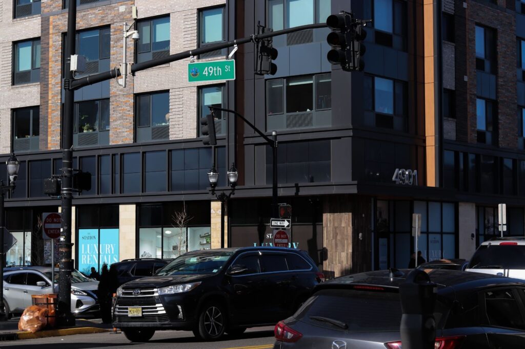 WEST NEW YORK, NJ 2/24/24 49TH STREET: A luxury building called “The Station” stands out among the busy street. Photo by Chelsea Pujols