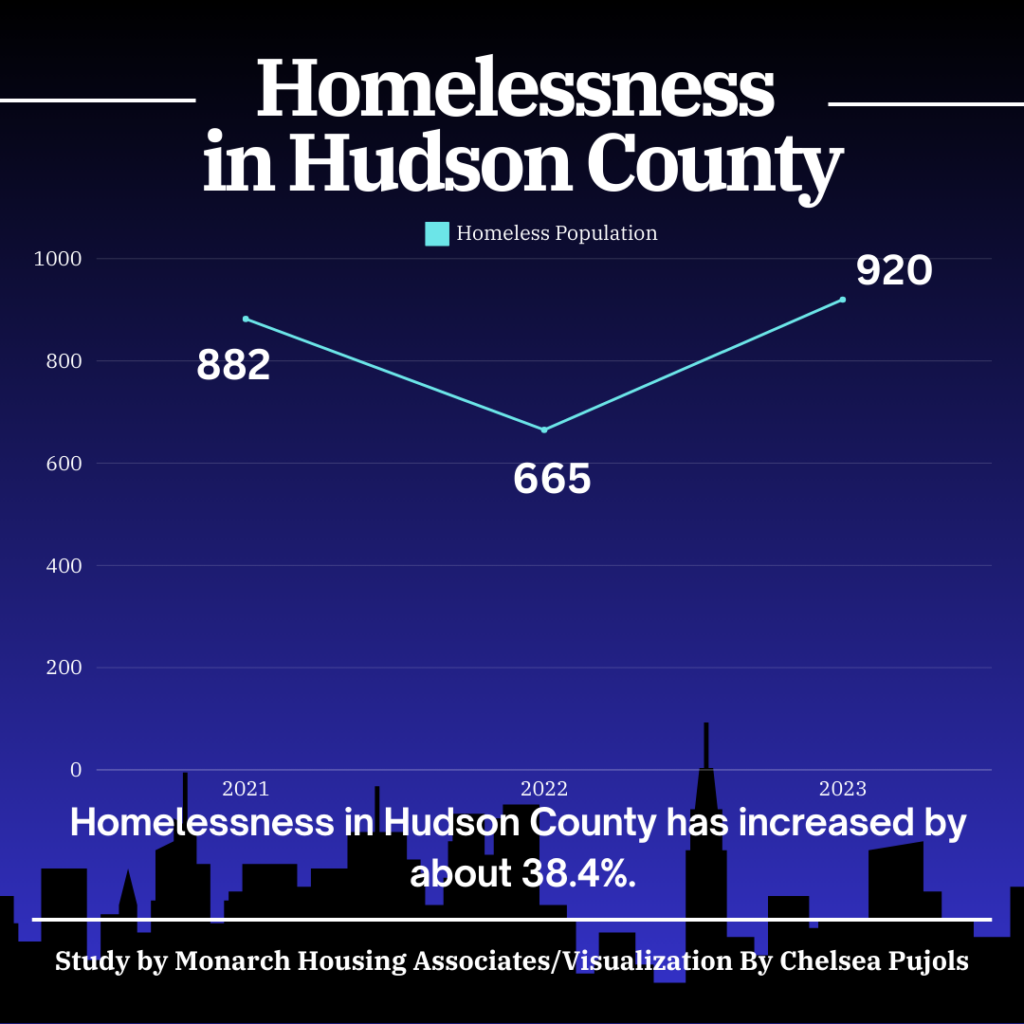 The amount of homeless individuals in Hudson County has gone from 665 to 920; an increase of about 38.4% found in a study by Monarch Housing Associates.