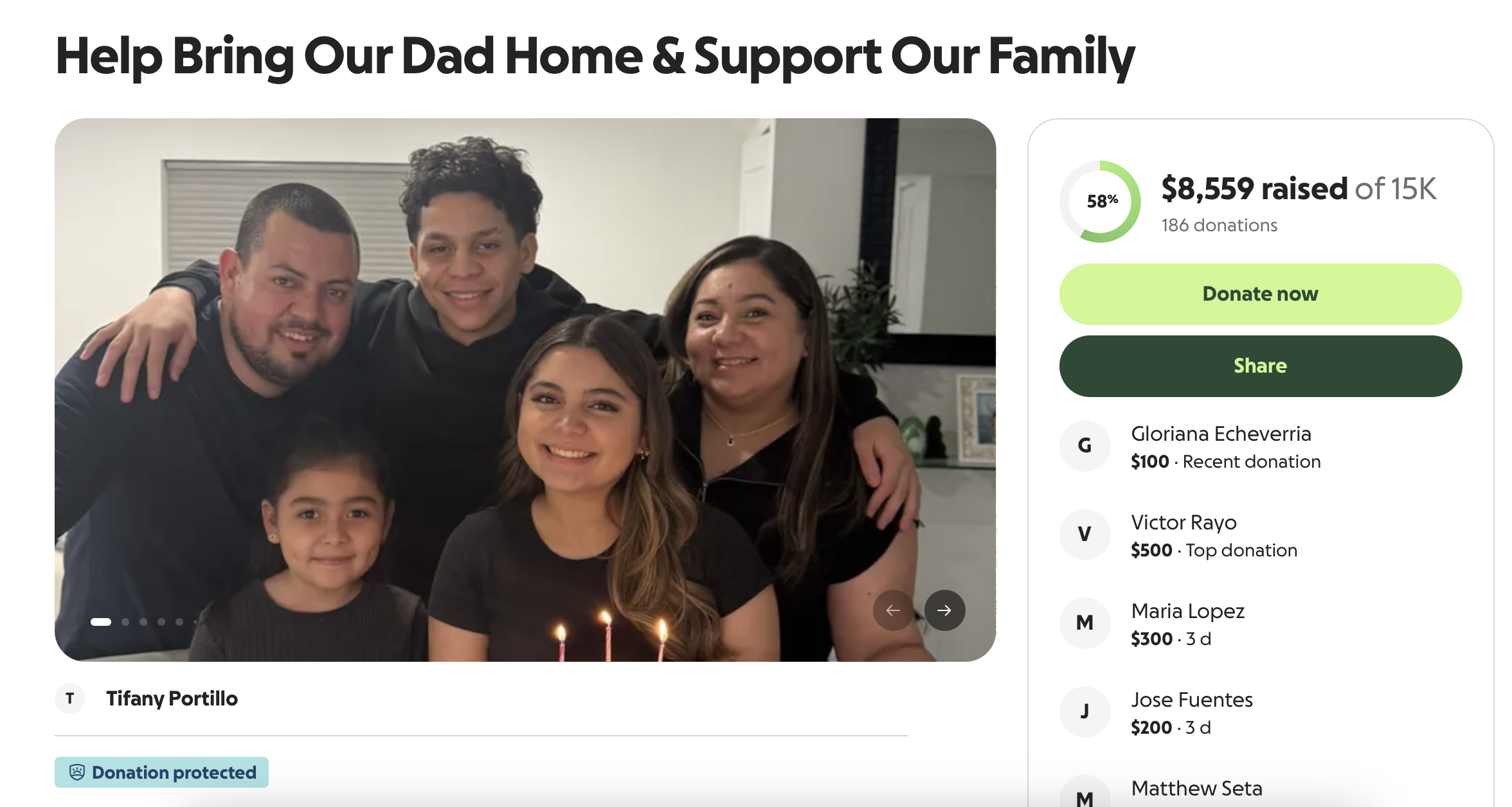 “My dad, Jose Portillo, is a hardworking, loving man who has always put his family and others before himself. He has helped people even when we didn’t have much to give. Not only is he a good friend, uncle and brother, but he is an extraordinary father. I am the oldest of two siblings, 15 and 8, here in the United States, and we also have an older sister in Honduras who my parents financially supported,” Tiffany wrote on GoFundMe.