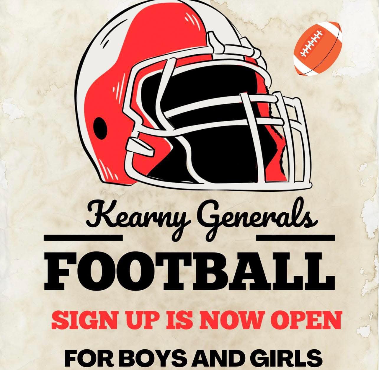 The Kearny Generals are looking for boys and girls in second to sixth grade to join their football team, according to a Facebook post by Pamela Gomes.