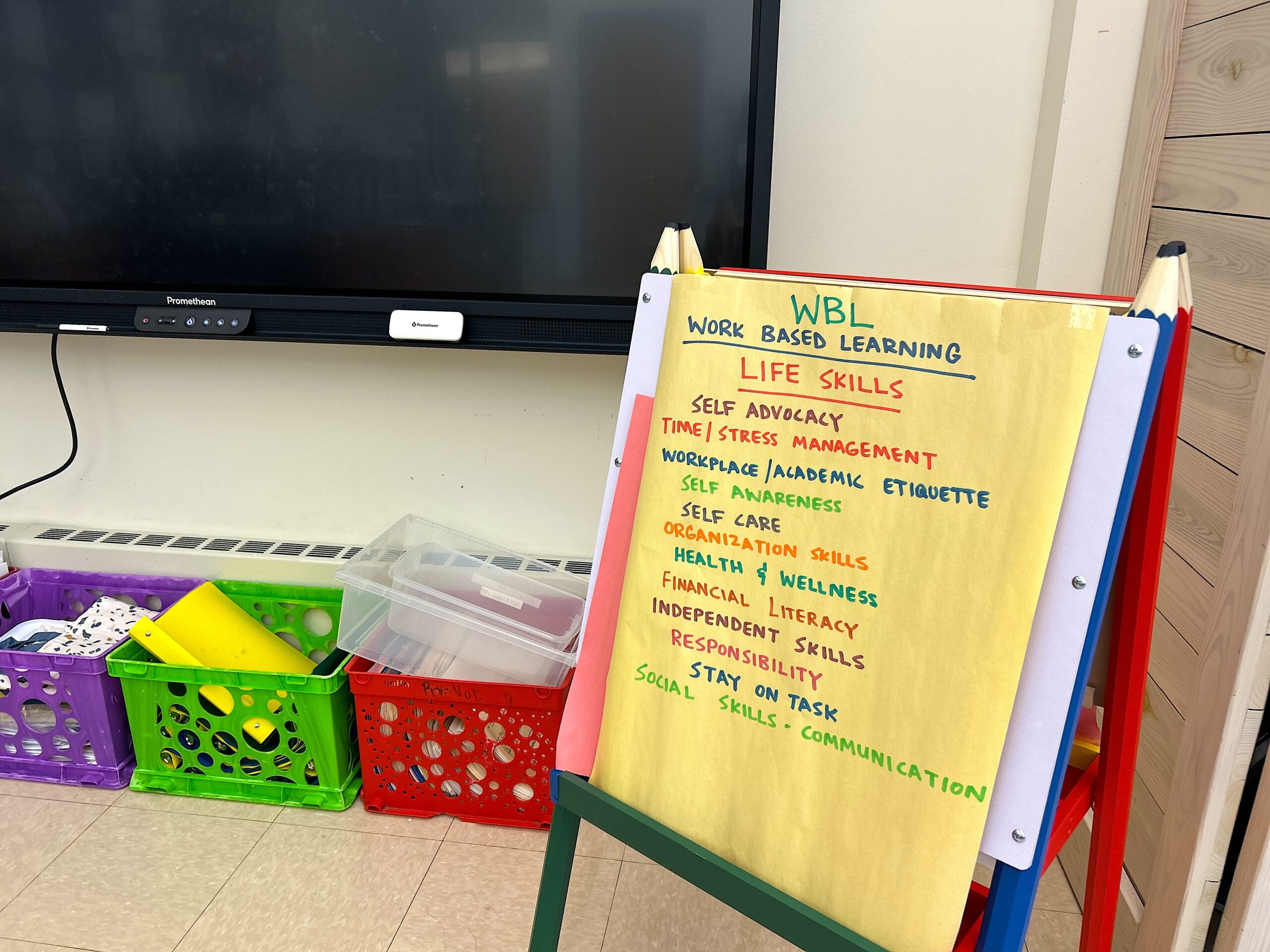 Walking into her classroom is like a peek into the outside world that awaits each student. From ages 14 to 21, students can get experience running a store through the school store in the classroom, which sells snacks, fruits and drinks, all available for purchase. There’s also a kitchen and storage unit where students can pick up on other life skills.