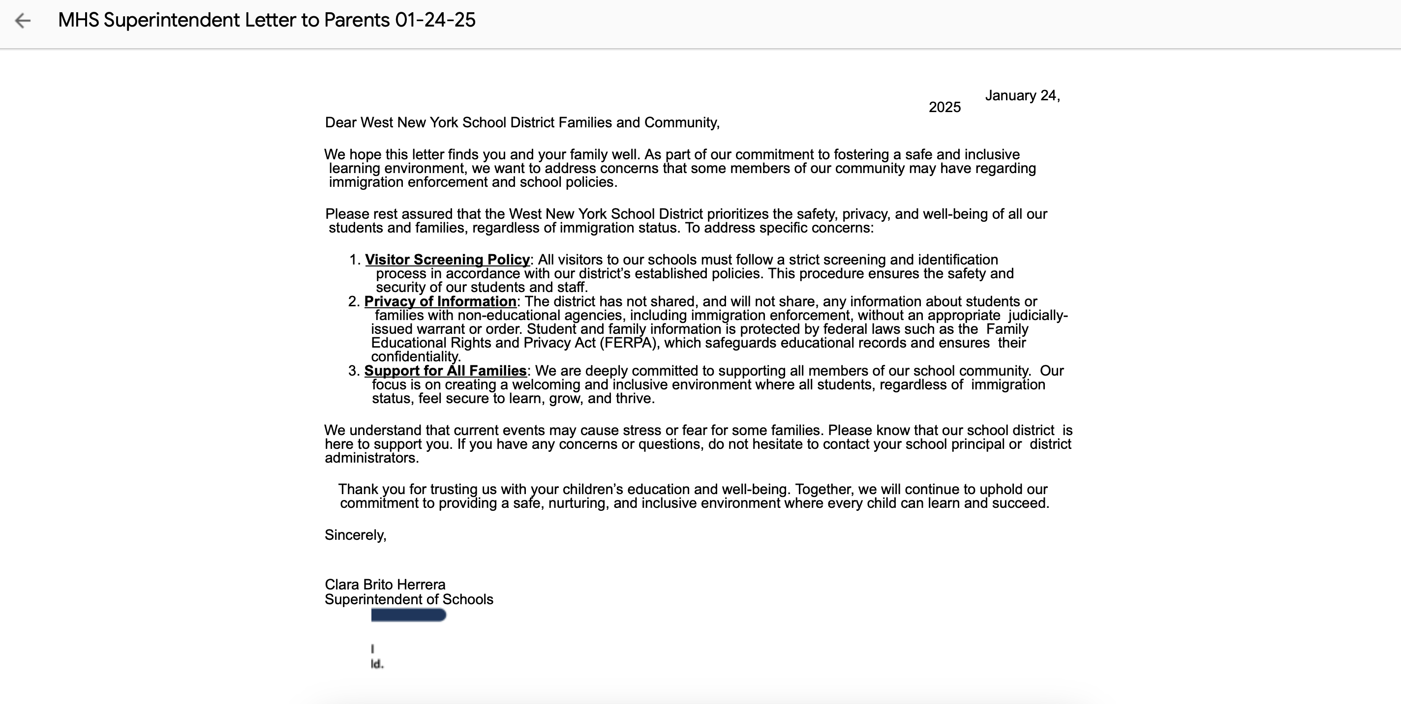 “We are going to prepare a plan with various members at the district level on what happens if ICE agents were to come to us,” Norma Fernandez, the Superintendent of Jersey City Public Schools, told Slice of Culture at a recent Board of Education meeting held at Martin Luther King Jr. School.