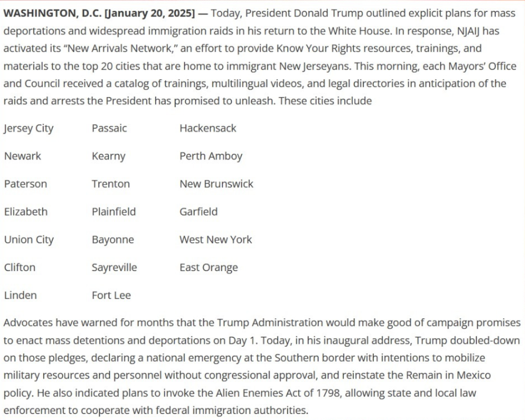 “It is crucial that every New Jerseyan–from students to employers—is safe in their community,” read a post by the New Jersey Alliance for Immigrant Injustice. The organization added that would it take measures “in preparation for more raids like these.”