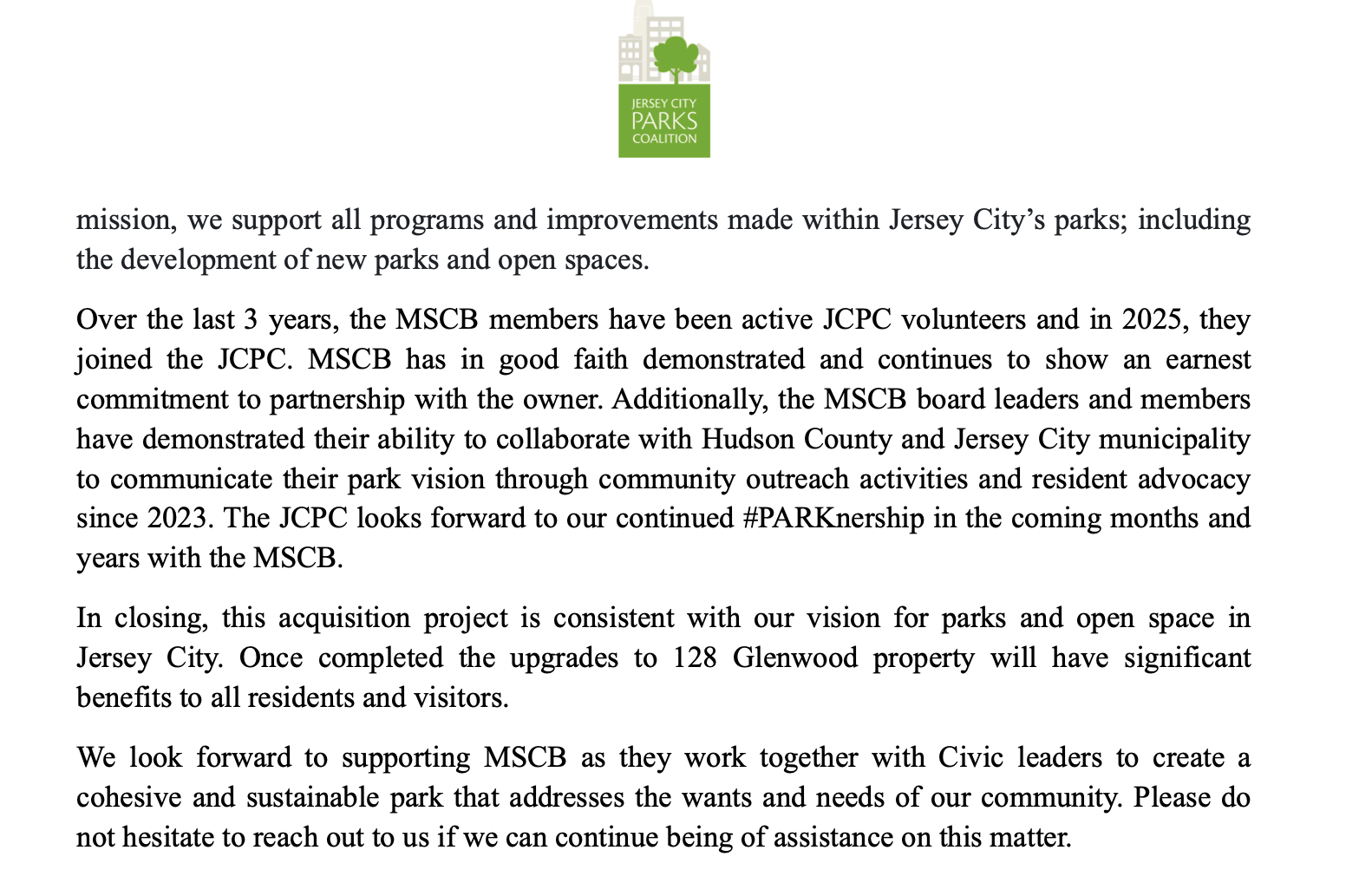 JCPC letter of support. Screenshot captured via an email sent to Slice of Culture.