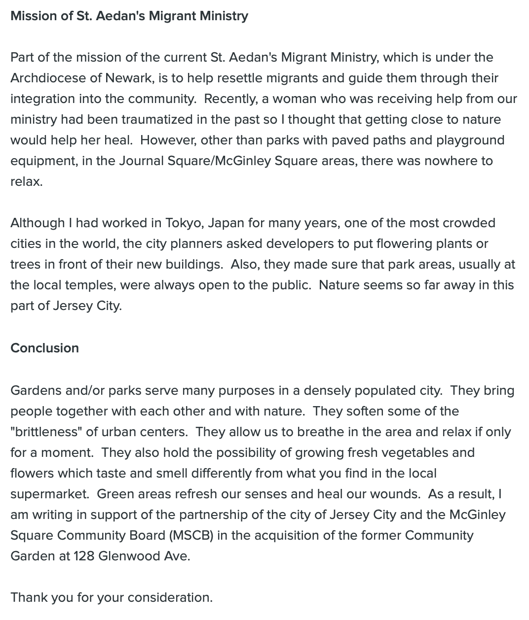 The McGinley Square Community recently put out a call to action, asking residents across Jersey City to “save the Migrant Garden” by emailing a letter of support.