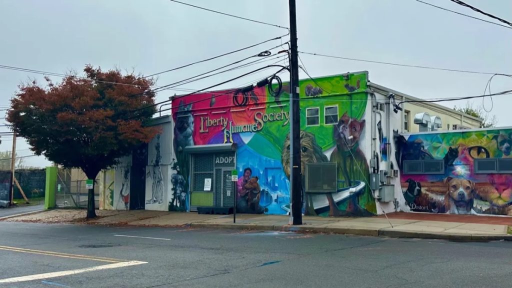 The organization turned a once dilapidated auto garage into a fully functioning animal care facility with their personal touch. One of the most notable features they added was a colorful mural of cats and dogs with Liberty Humane Society displayed proudly in bold letters.