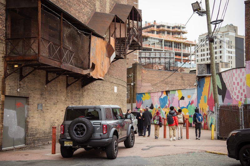 People walk in the alley next to Loew’s Jersey Theatre in Jersey City on Wednesday, March 20, 2024. (Reena Rose Sibayan / The Jersey Journal)