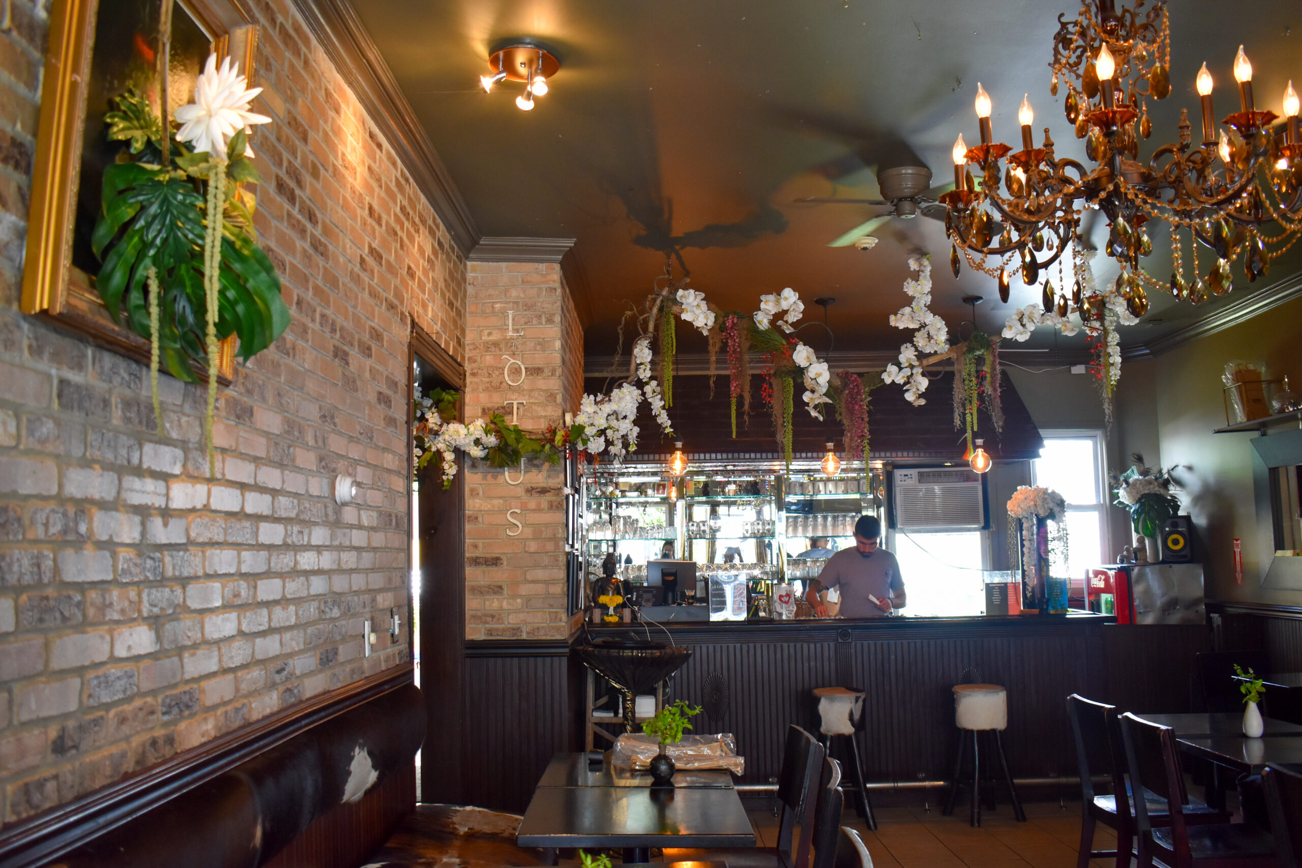 Walking along the vibrant Park Avenue, customers are immediately greeted with greenery and a pride flag as they approach Lotus Thai. Upon entering, you may notice there’s not a specific theme—black, white and brown pelt seat covers; a green wall on one side and a brick interior on the other; hanging white flowers (which Rosario designed himself); and a red chandelier dangling in the center—yet the aesthetic somehow comes together.