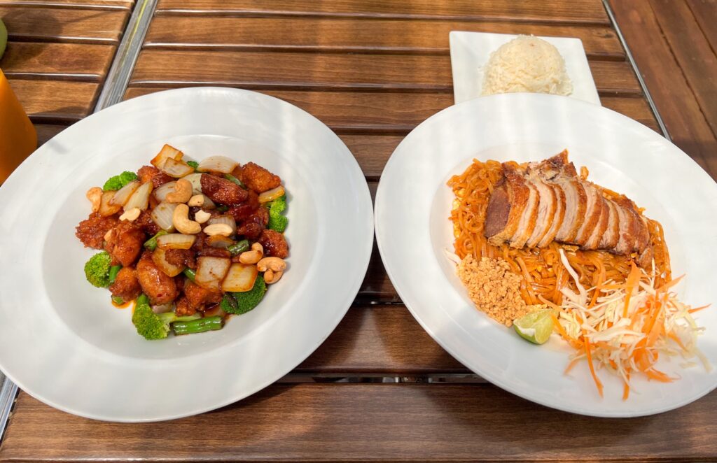 These ingredients can be found in dishes like Tom Yum, shrimp in spicy hot and sour lemongrass soup; sauteed Sweet and Sour dish; and Chili Jam Fried Rice. As for a customer favorite, Rosario said the Bangkok Chicken is one of their “famous” dishes.