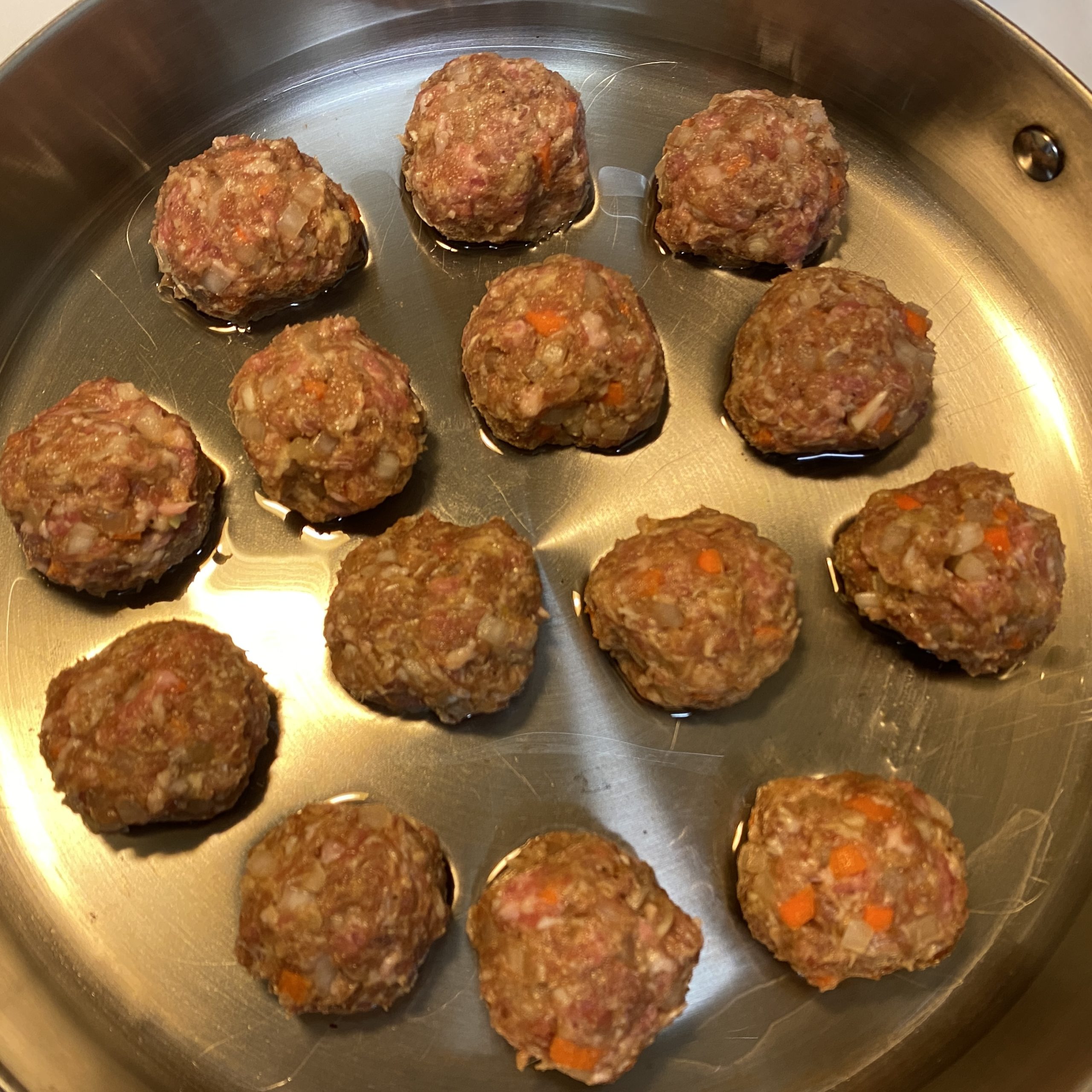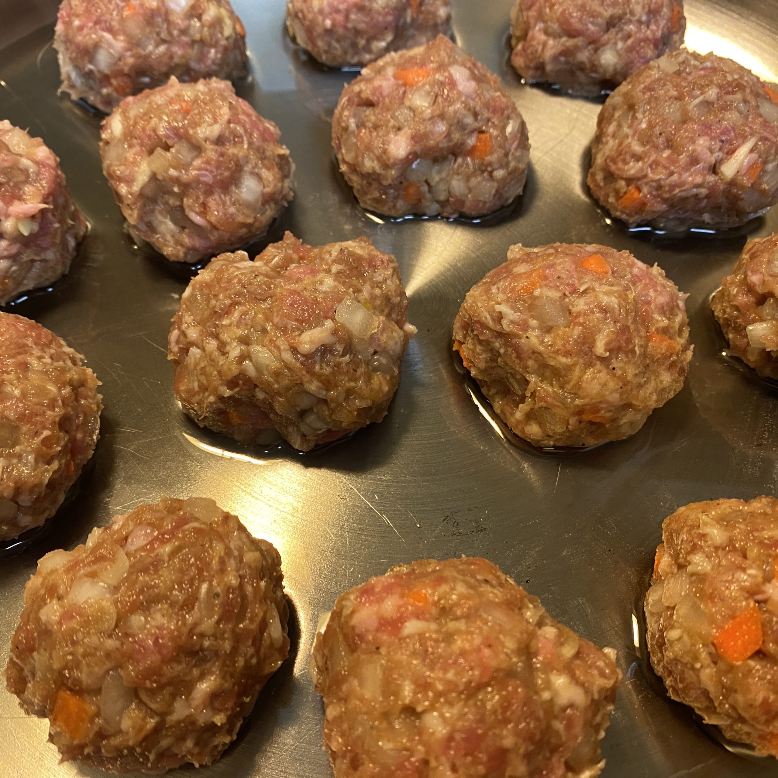 - Keep repeating until you’ve used all of the meat. (It should make around 24 meatballs)