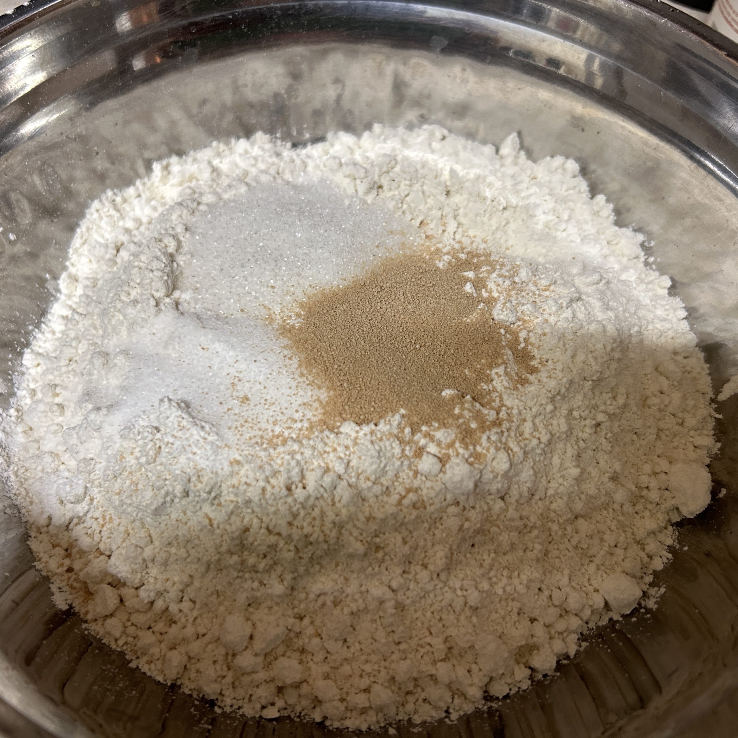 1. In a medium bowl, add all the dry ingredients for the fry bread and mix.