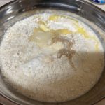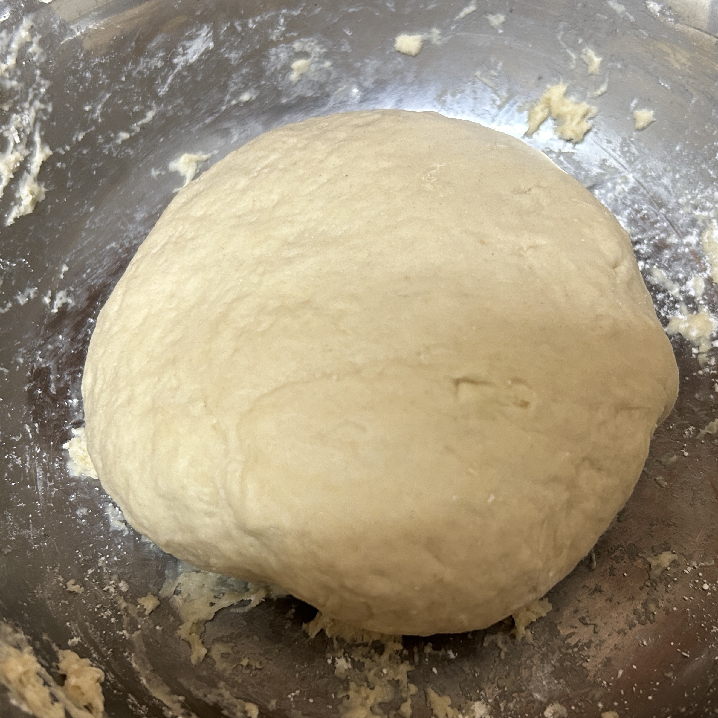 3. Add the dough to a floured surface and continue to knead until a smooth dough forms. Shape in a form of a ball. Cover with a paper towel and let rest for 30 minutes.