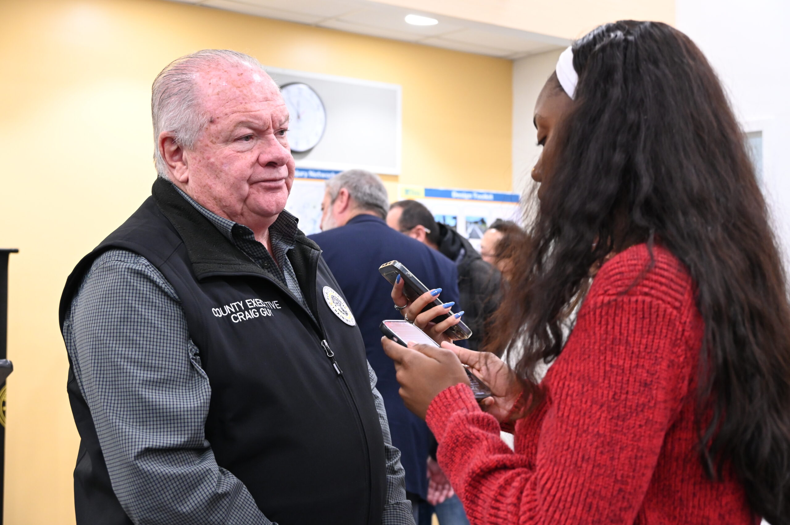 Allegresse Hungoni, Slice of Culture intern, interviews Hudson County Executive Craig Guy. (Courtesy of Hudson County)
