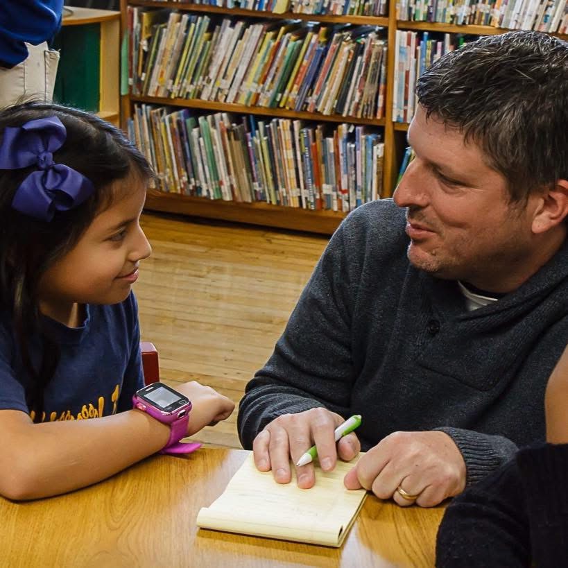 Steve Lenox, Publisher, TAPinto Paterson, interviews Paterson student following announcement of community reading program. (Courtesy of NJ News Common)