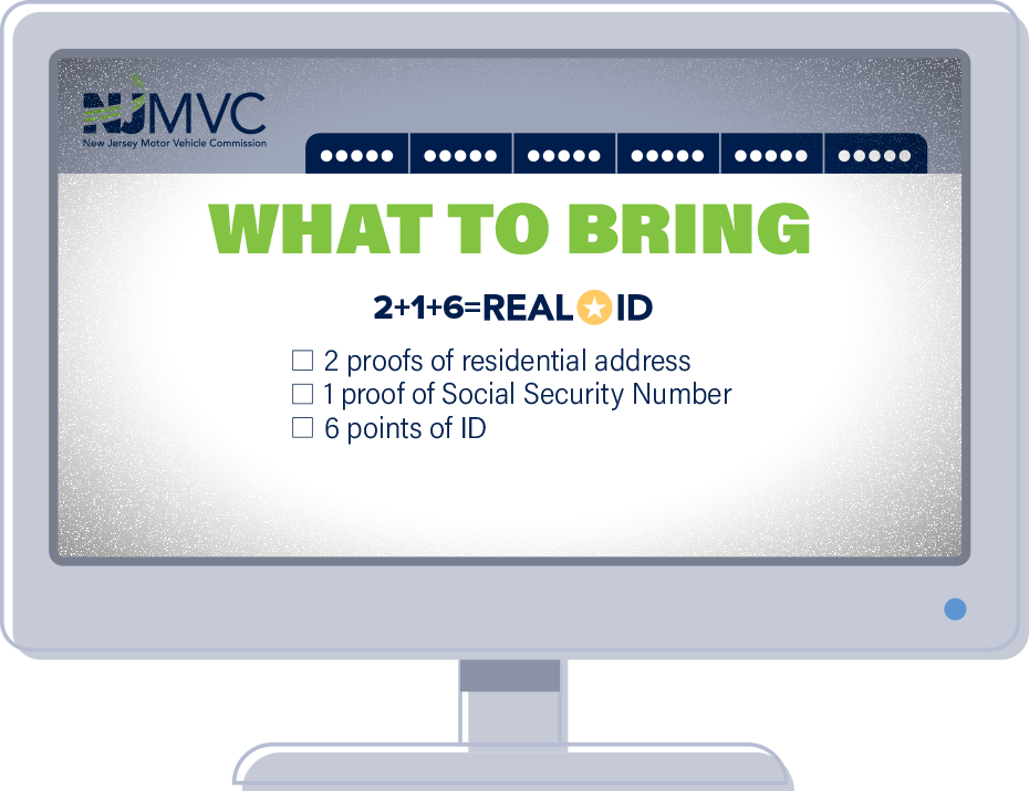 - Required documents include two proofs of residential address, one verifiable Social Security number and documents that add up to six Real ID points, also known as 2 + 1 + 6 = Real ID