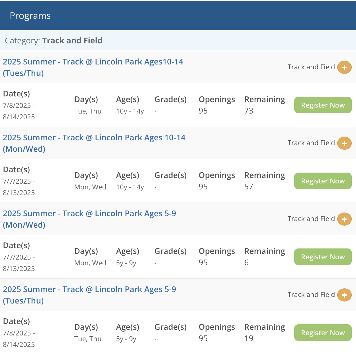The program, which is available for kids ages 5 to 14, will be trained by experienced coaches. The introductory track program that will show kids the building blocks of track events. All athletes will learn fundamental skills in track and will be encouraged to develop their key motor skills, including balance, muscle control and kinetic development.