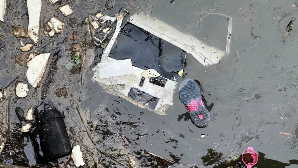 Debris floats in the water at the scene where a helicopter crashed into the Hudson River, Thursday, April 10, 2025, in Jersey City, N.J. (Ted Shaffrey / AP Photo)