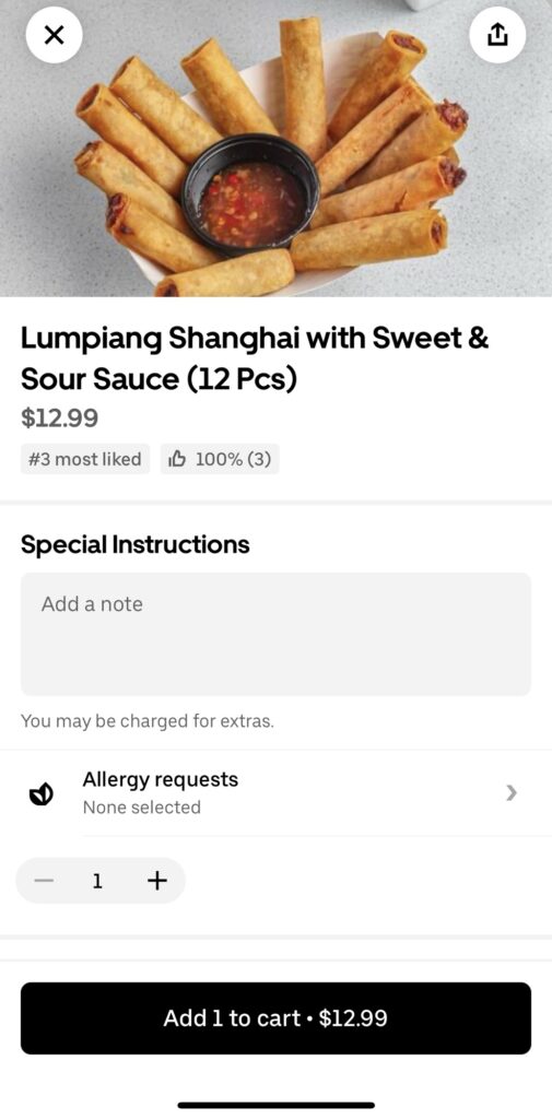 Then, I would just advise them to choose what they really want, I’ll match the price for other items, then hand in the items to the driver what they really want from the in-person menu.”