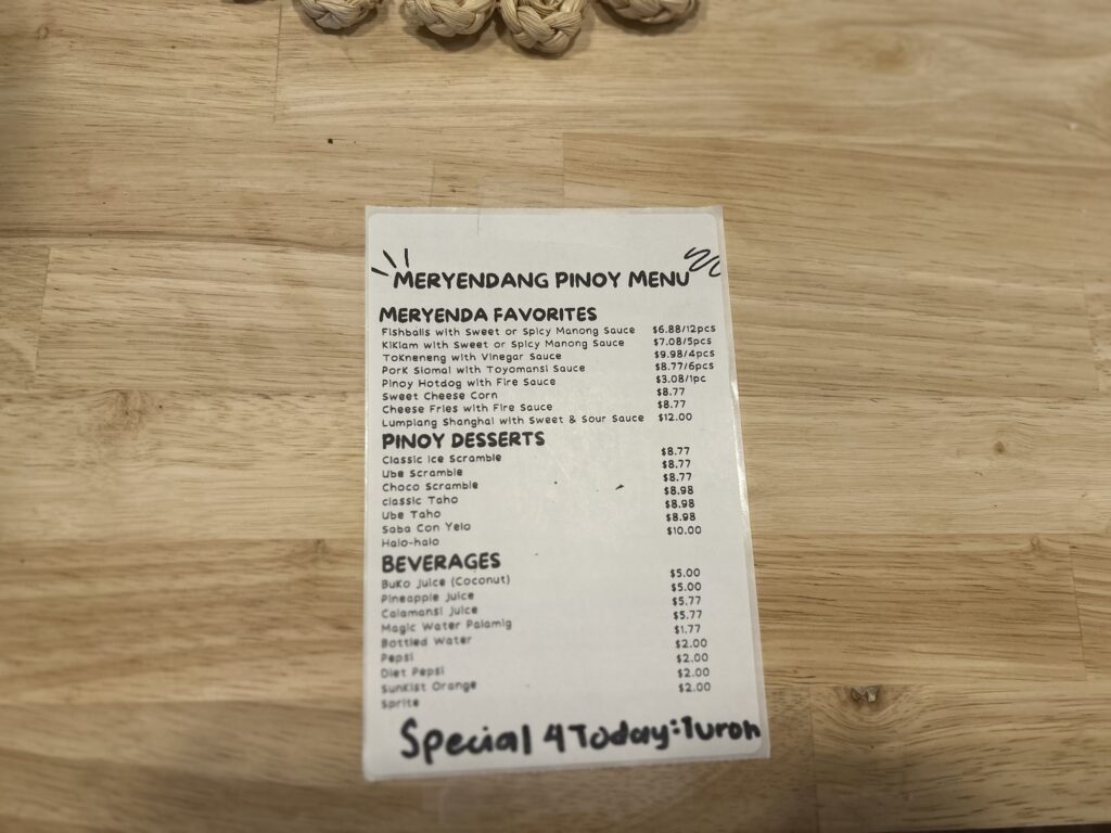 Meryendang Pinoy’s menu in August 2024 (Adrienne J. Romero / SOC Images