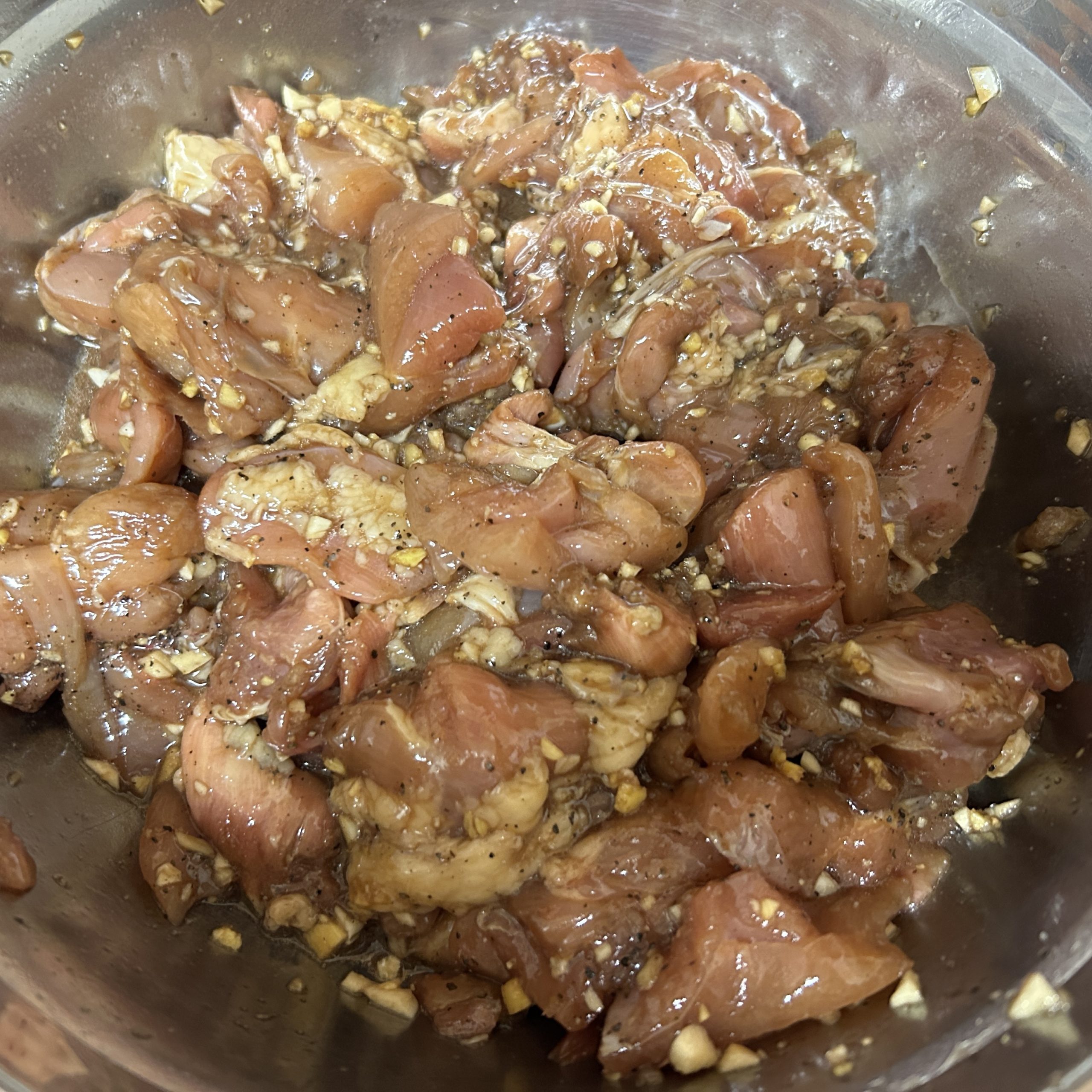 1. Start by prepping your chicken. Cut them into bite sized pieces and set aside in a bowl.