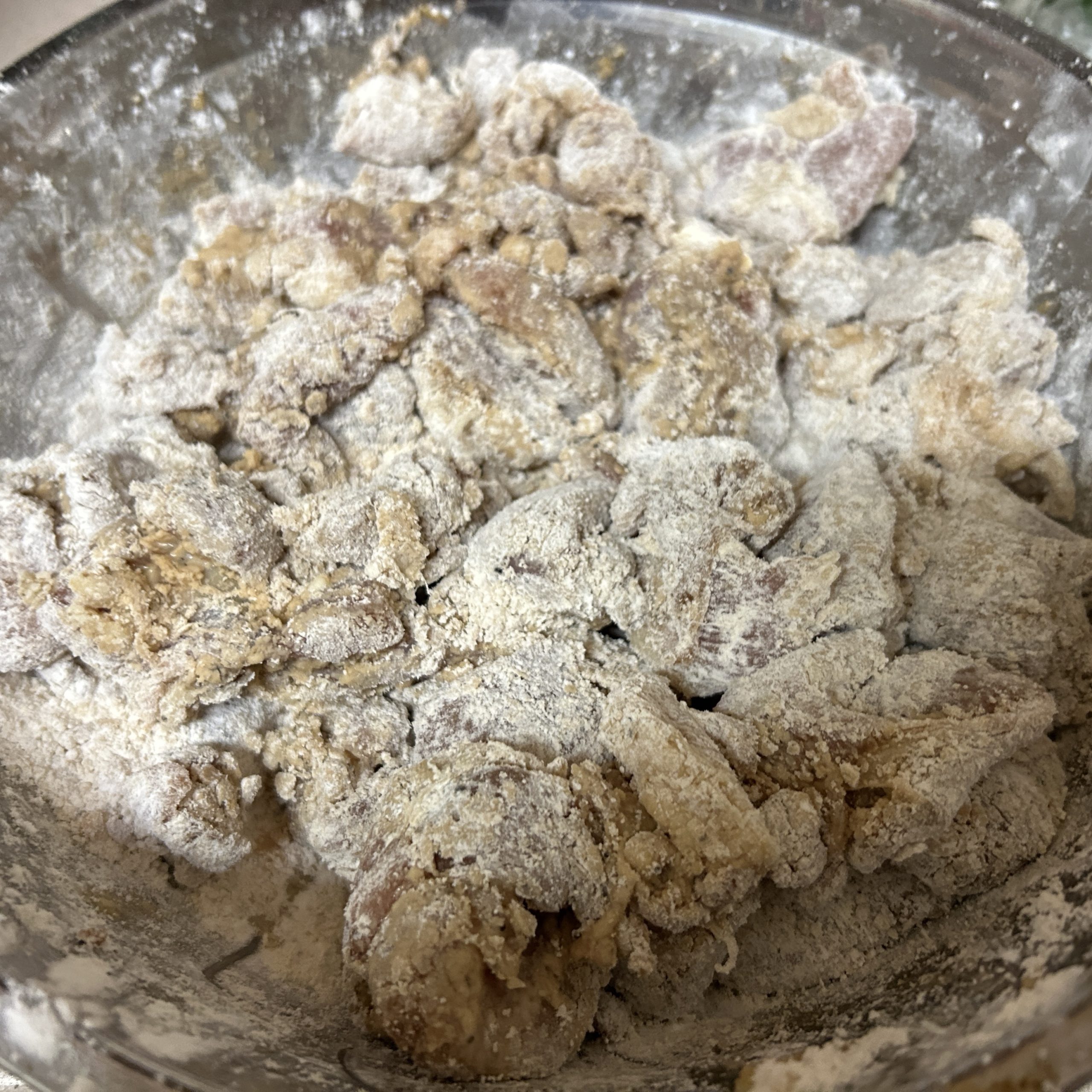 4. In the meantime, coat your chicken with cornstarch or potato starch.