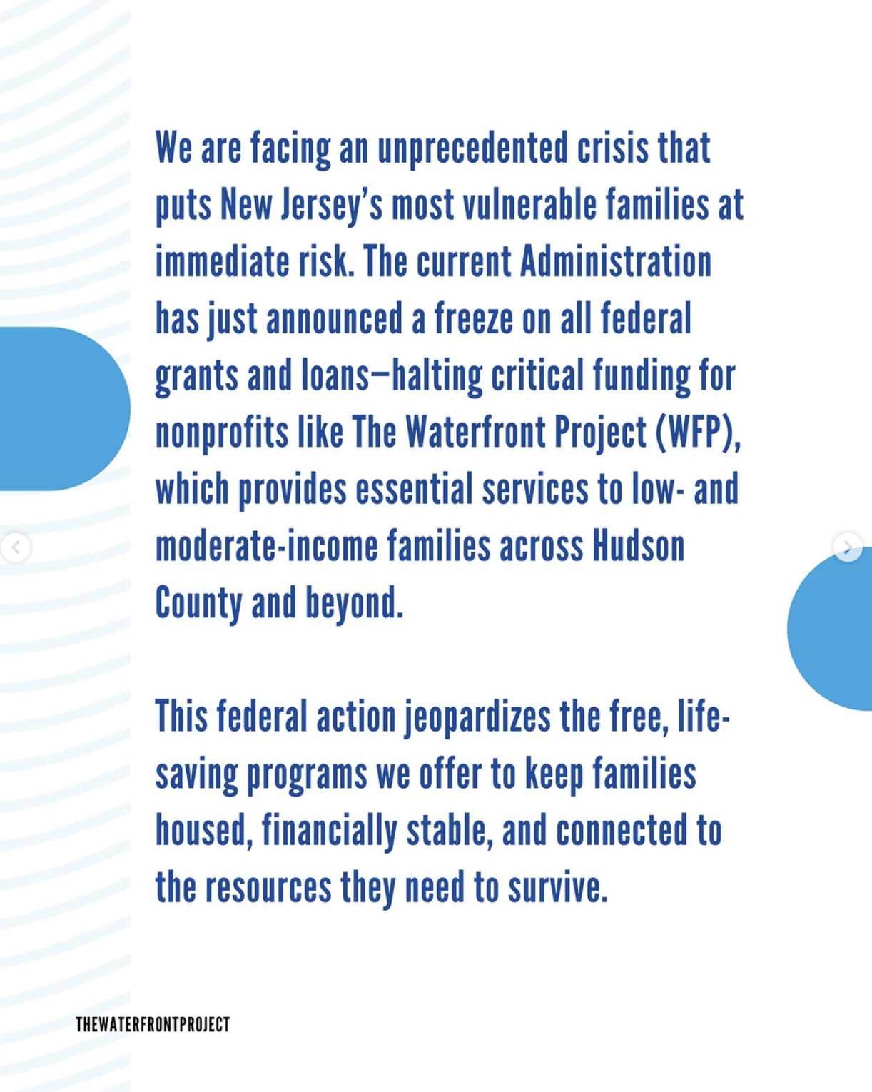 “Over the past several days our offices have been inundated with calls from residents and providers worried about the President’s pause on federal grants,” said Craig Guy, the Hudson County Executive, in a statement provided to Slice of Culture.