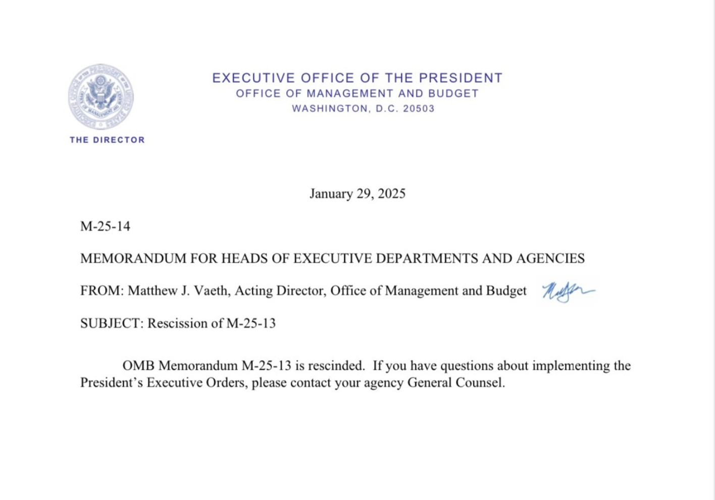 The executive order lasted only two days and has since been rescinded back to the White House Office of Management and Budget (OBM), which is where the memo announcing the pause in trillions of dollars of federal grants and loans came from.