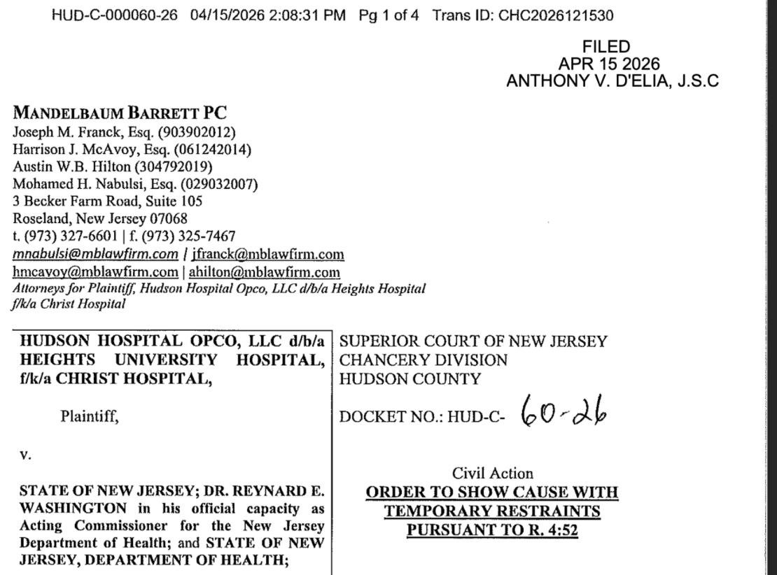 HRH told state officials the hospital had become financially untenable, having bled $74 million last year alone and projected to lose another $30 million in 2026. Under New Jersey law, however, a hospital cannot simply shutter its doors, the state must first grant a certificate of need authorizing the closure.
