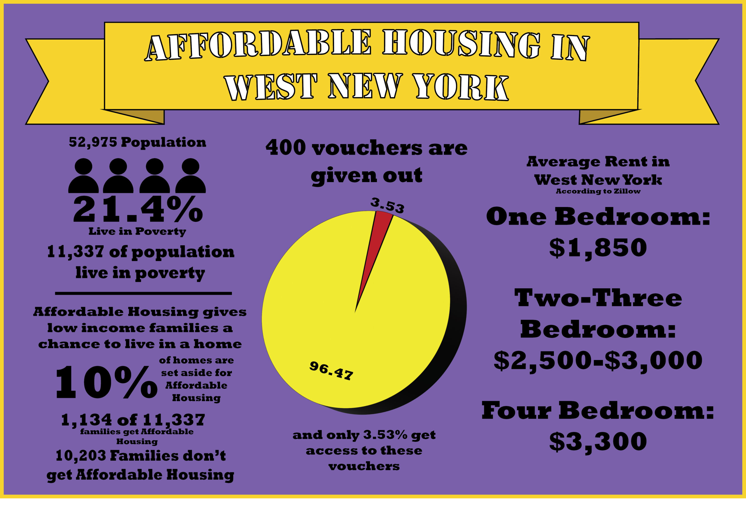 According to Slice of Culture’s calculations, about 11,337 people in West New York live in poverty. Being a low-income household is one of the requirements to become eligible for affordable housing, which 10% of all units in West New York must be set aside for, as stated by Ordinance #32/34 Section Two.